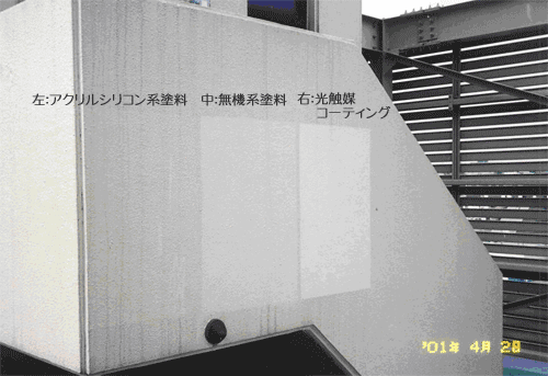 光触媒コーティング材と他品種仕上げ材の屋外暴露試験結果 |